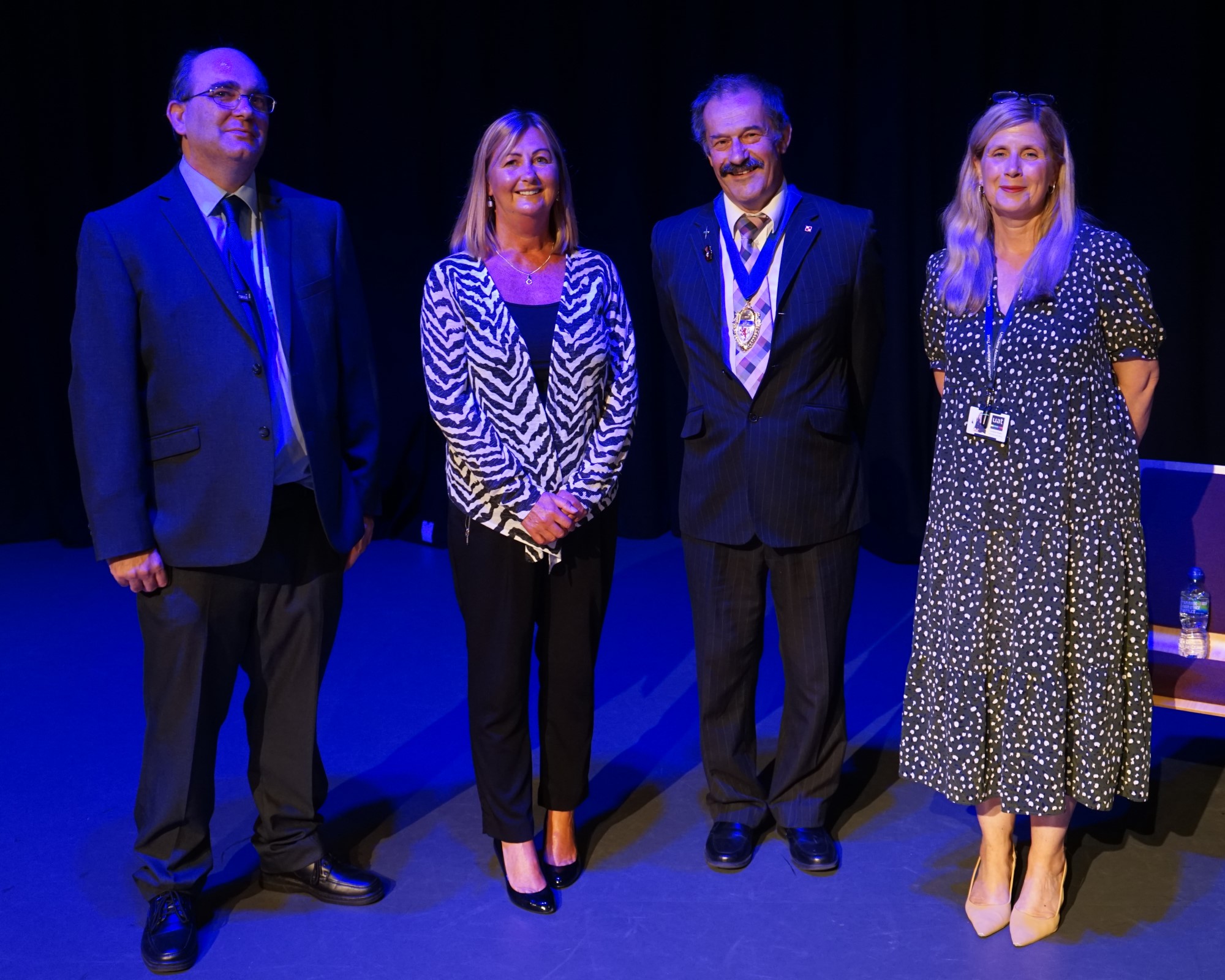 Left to right: Gary Vine (Civic Award Publicist & Business Administrator), Karen Thomson (Award Founder & coordinator), Councillor Percy Prowse (deputy Devon major) and Lorraine Heath OBE (Chief Executive Officer, Uffculme Academy Trust)