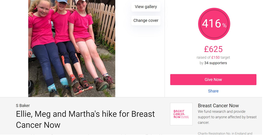 Year 6 Students Ellie, Meg and Martha from Bovey Tracey Primary School raises £625 for Breast Cancer Now.